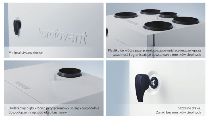 - Wszystkie komponenty rekuperatora są dopasowane pod kątem aerodynamiki.